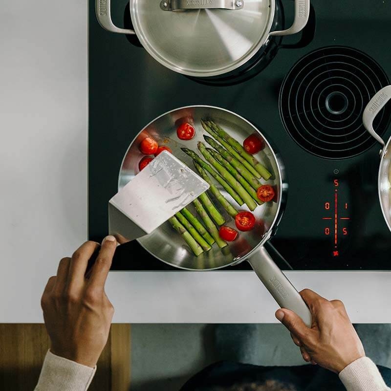 Les asperges vertes et les tomates cerises grappe forment une combinaison rapide et parfaite pour les soirs de semaine, mais aussi un accompagnement léger pour un dîner plus élaboré. Dans ta poêle en acier inoxydable les asperges gardent une texture croquante et les tomates se caramélisent juste assez pour libérer leur douceur naturelle. En quelques minutes tu obtiens un plat étonnamment simple qui fonctionne toujours.