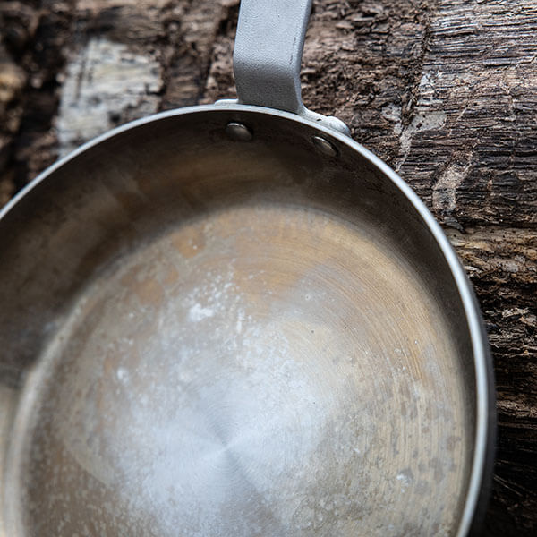 Als je probeert een RVS pan in te branden zal de olie niet hechten zoals je gewend bent bij gietijzer of plaatstaal. In plaats daarvan bakt de olie hard aan en ontstaat er een plakkerige of bruine laag die niet egaal is. Het resultaat: een pan die er vies uitziet en lastiger schoon te maken is.