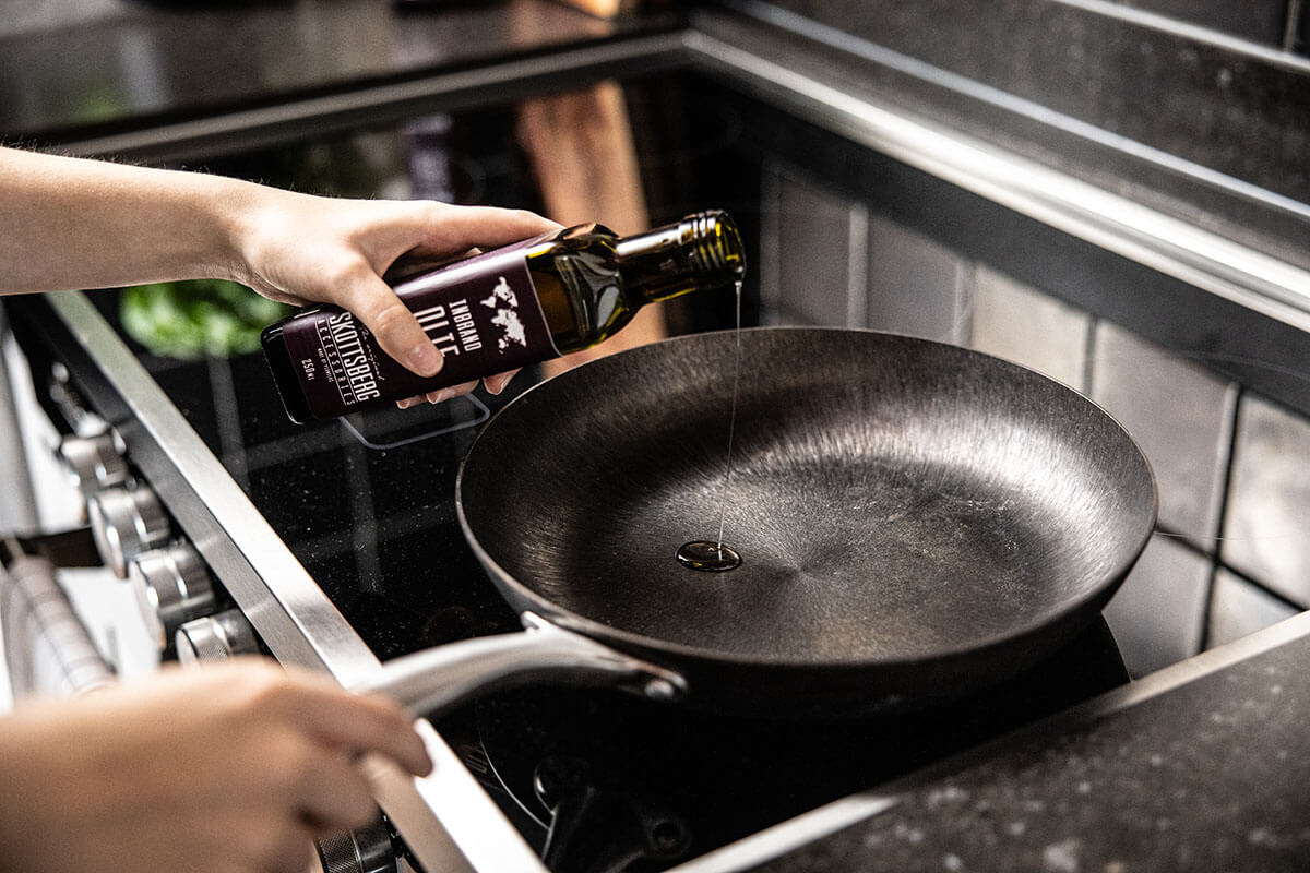 Inbranden is een proces waarbij je met olie een beschermende laag op een pan creëert. Die laag, ook wel natuurlijke antiaanbaklaag genoemd, zorgt ervoor dat het oppervlak minder snel aanbakt en je pan beter beschermd is tegen roest. Dit proces is alleen relevant voor materiaal die zo’n laag kunnen opbouwen, zoals gietijzeren en plaatstalen pannen.