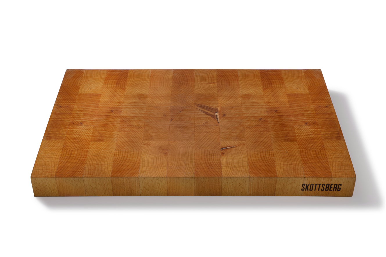 We hebben hem op een speciale manier gemaakt: kops-gezaagde stukken hout zijn met elkaar verlijmd. Dat geeft de plank een zelf herstellend vermogen: je moet het wel heel bont maken wil je krassen blijven zien.